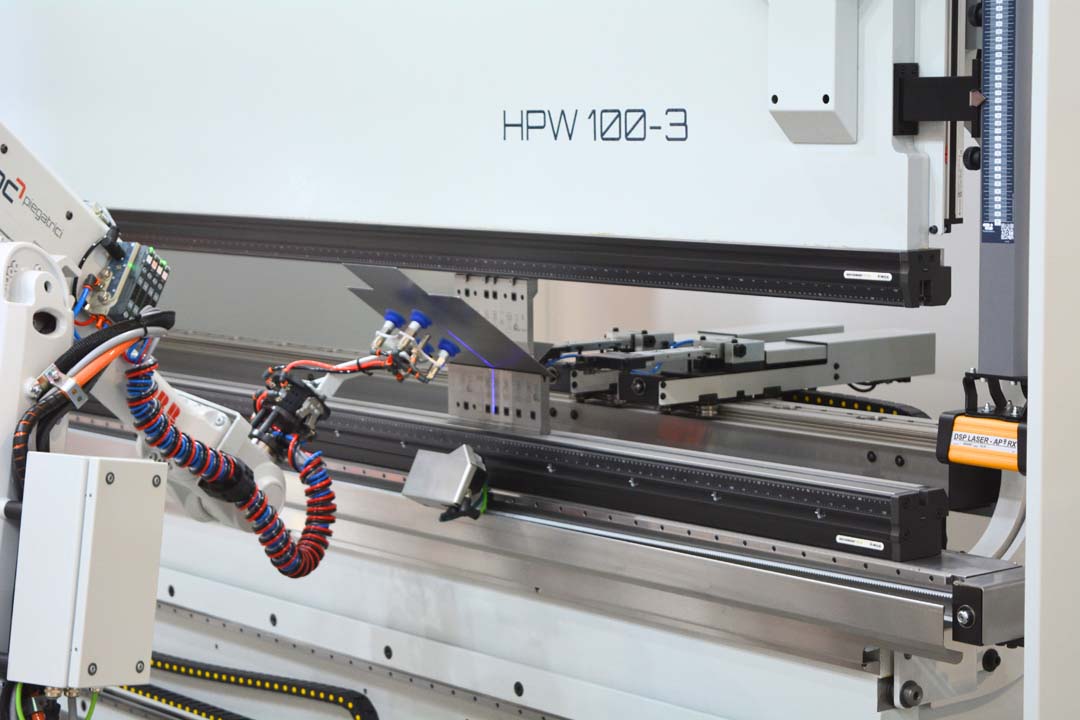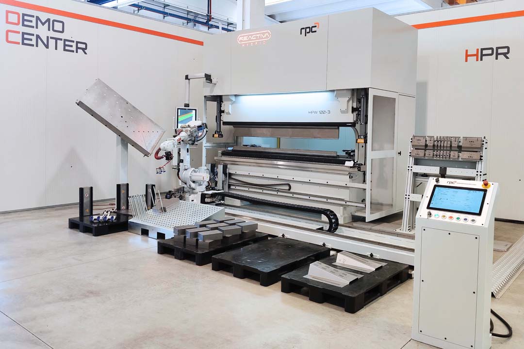 Massima efficienza, tecnologia e automazione. È in quest’ottica che abbiamo studiato la cella robotizzata HPR (High-Performance Robotic), pensata per quei clienti che puntano ad un’automazione totale. Formata dalla piegatrice ibrida Reactiva HPW 100-3 e dal robot industriale ABB, è completata dal cambio stampi automatico ATC, grazie al quale si raggiunge una produzione completamente indipendente, senza l’ausilio di un operatore.