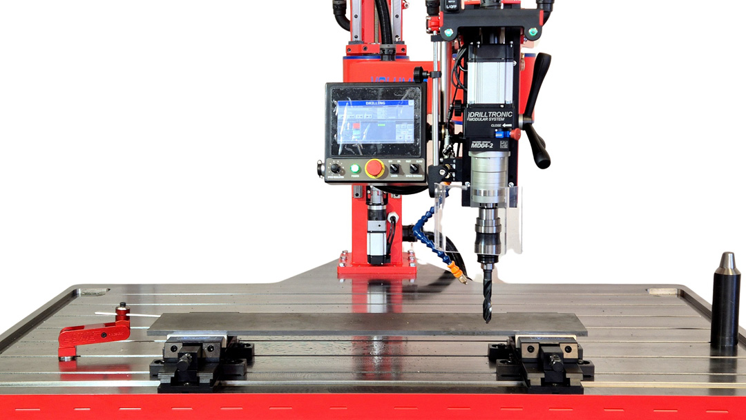 Drilltronic è un innovativo sistema a braccio radiale che permette di eseguire rapidamente operazioni di foratura, maschiatura e svasatura su differenti tipologie di materiali. La struttura è studiata con una tecnologia in grado di dare fluidità e rapidità nei posizionamenti, garantendo rigidità e precisione durante le operazioni di lavorazione.