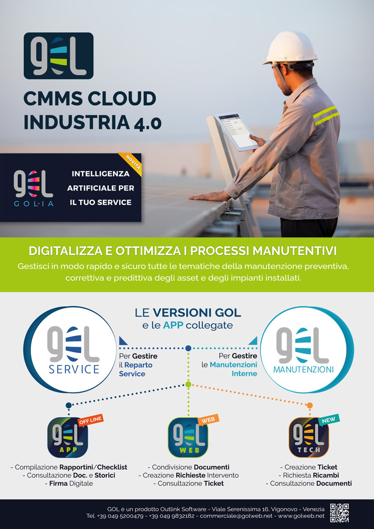 GOL è il gestionale CMMS progettato per le aziende che operano nel service e nella manutenzione industriale.