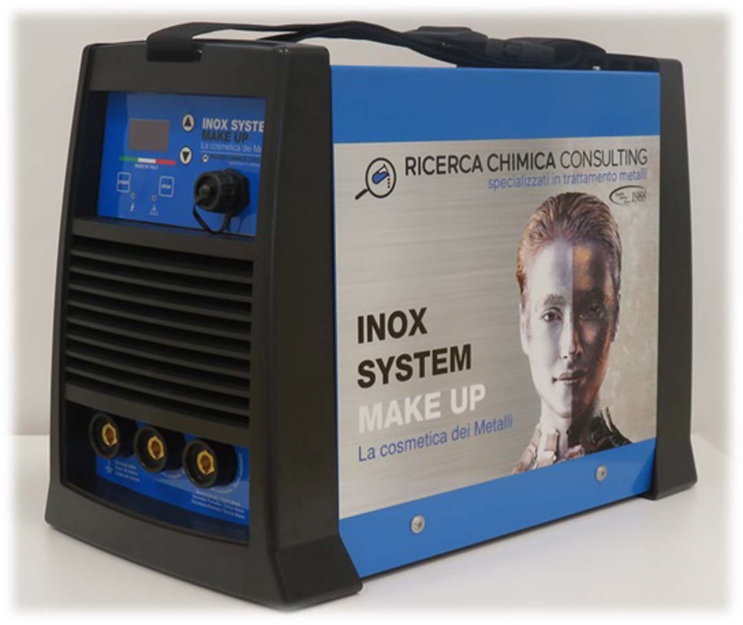 Sistema tecnologicamente all’avanguardia, Inox System MAKE UP è l’Unico Sistema al mondo in grado di realizzare, utilizzando prodotti non corrosivi, il Ciclo completo dell’Acciaio Inox: Sgrassaggio, Disossidazione, Decapaggio, Lucidatura Elettrochimica, brunitura istantanea, Passivazione, elettromarcatura, il Ciclo Completo Certificato nel rispetto delle normative ASTM B117 ed ASTM A967. Sistema a basso impatto ambientale è in grado di trattare saldature TIG, PLASMA, LASER, ORBITALI a RESISTENZA e MIG in modo istantaneo, efficace, senza sprechi con emissioni NETTAMENTE INFERIORI ALLA SOGLIA DI MINIMO PERICOLO.