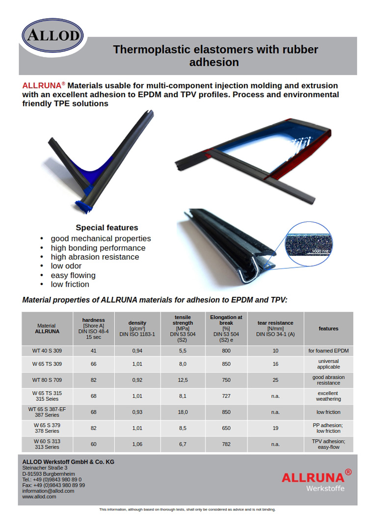 La serie ALLRUNA WT rappresenta lo state-of-the-art in fatto di adesione a EPDM e TPV per applicazioni di corner-molding in settore automobilistico.
