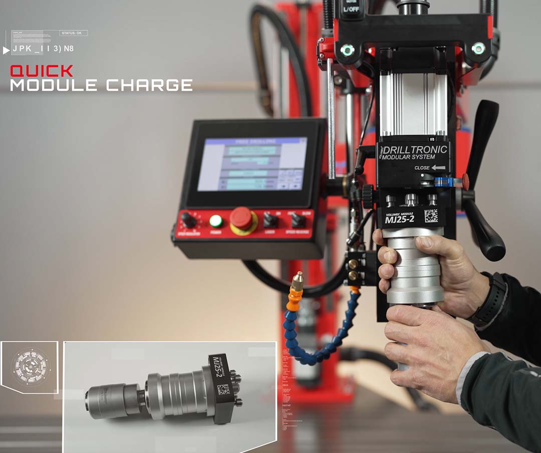 Drilltronic è un innovativo sistema a braccio radiale che permette di eseguire rapidamente operazioni di foratura, maschiatura e svasatura su differenti tipologie di materiali. La struttura è studiata con una tecnologia in grado di dare fluidità e rapidità nei posizionamenti, garantendo rigidità e precisione durante le operazioni di lavorazione.