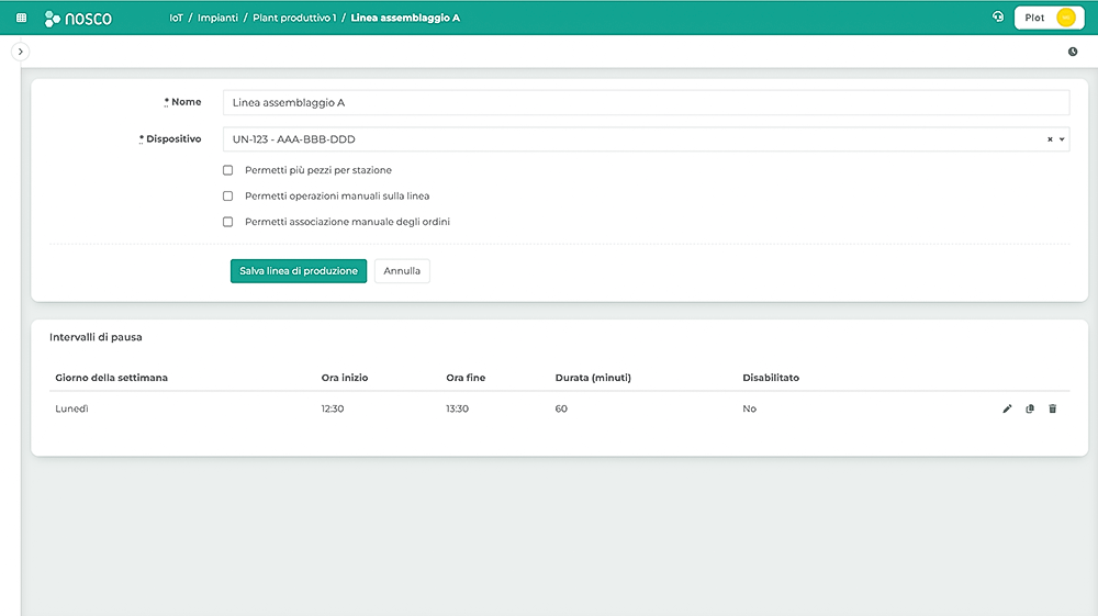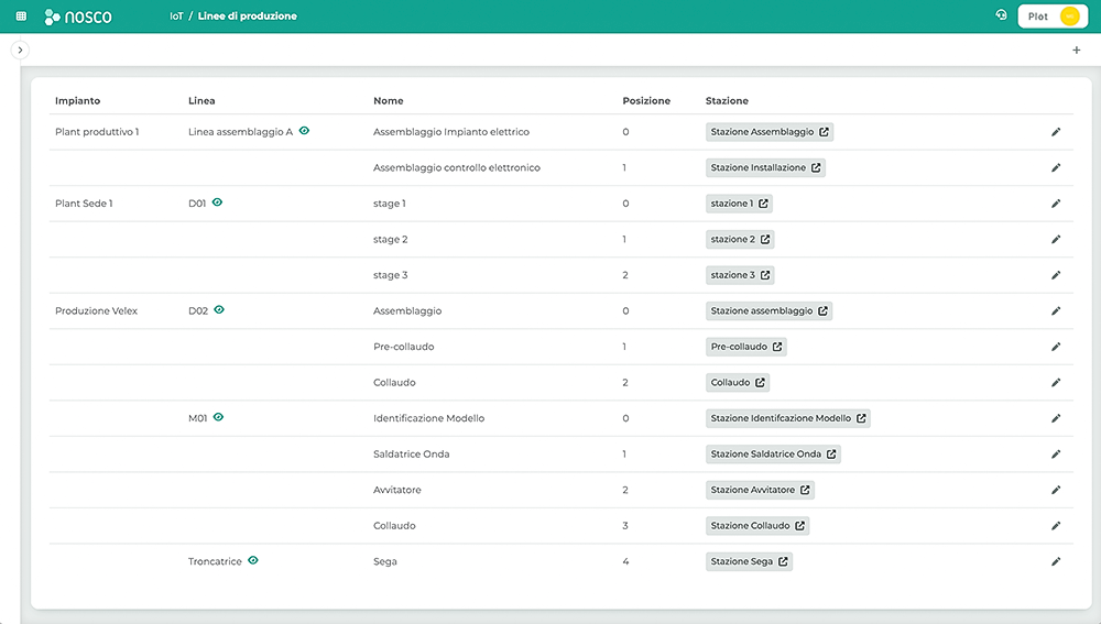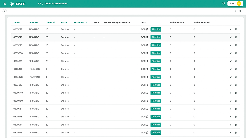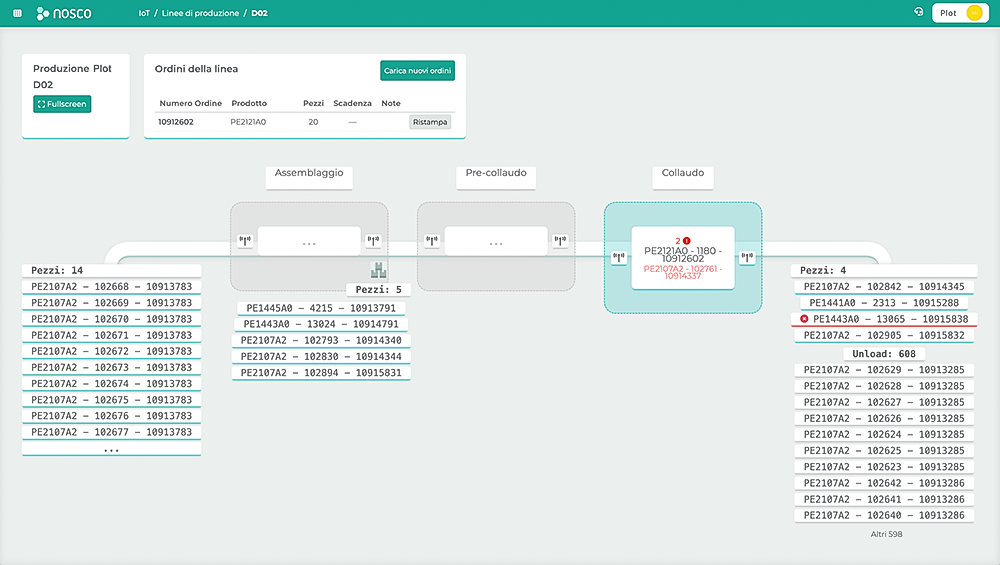 Nosco Factory è la tecnologia Leanbit che rende l’avanzamento di produzione per i processi di assemblaggio manuali o semi-automatici semplice, visuale e tracciabile. Ogni linea è rappresentata digitalmente e integrata con dispositivi fisici (barcode, sistemi di collaudo, sensori) connessi via Opta di Finder, basato su Arduino Pro. Il sistema consente di caricare ordini, tracciare ogni pezzo, stampare etichette e monitorare i tempi reali di produzione, anche su linee complesse. Il firmware e il cloud sono inclusi: voi dovete solo connettere l’hardware.